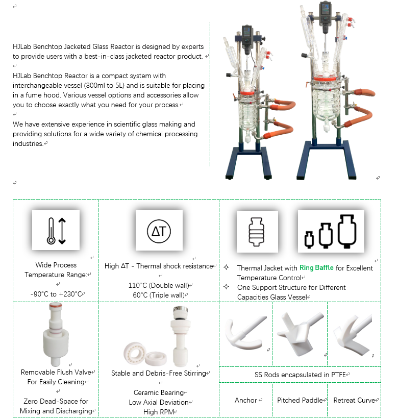 HJLab 300ml Glass Vessel Benchtop Glass Reactor is built for top performance at lab-scale and has been engineered to provide a great user experience.
